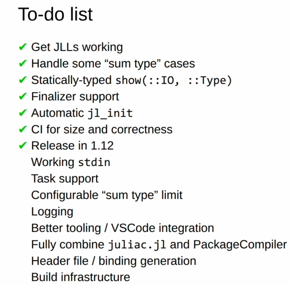 You can try with StaticTools.jl, although it will have caveats, if it works at all. But you can check. ![]()