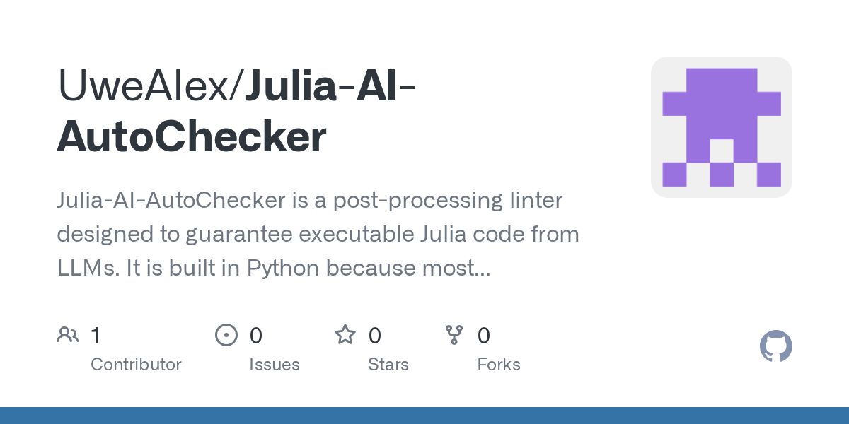 I’ve built a simple, Python-based linter called Julia-AI-AutoChecker that specifically targets these interferences. Since many advanced LLMs can execute Python code as a tool, the goal is to integrate this linter into the AI’s workflow so the AI can self-correct its own output before presenting it to the user.