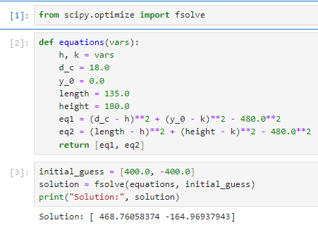 eq2 = (length - h)^2 + (height - k)^2 - 480^2